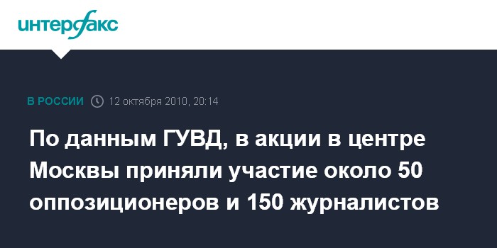 По данным ГУВД, в акции в центре Москвы приняли участие около 50 оппозиционеров и 150 журналистов