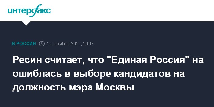 Ресин считает, что "Единая Россия" на ошиблась в выборе кандидатов на должность мэра Москвы