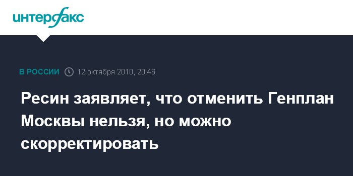 Ресин заявляет, что отменить Генплан Москвы нельзя, но можно скорректировать