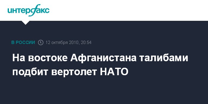 Лондон. 12 октября. INTERFAX.RU - По крайней мере, один человек погиб, еще восемь человек получили ранения, когда на востоке Афганистана вертолет НАТО был подбит реактивной гранатой, сообщает во вторник британская телерадиокорпорация Би-би-си со ссылкой на представителей сил НАТО в Афганистане.