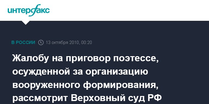 Жалобу на приговор поэтессе, осужденной за организацию вооруженного формирования, рассмотрит Верховный суд РФ