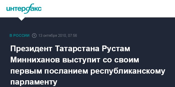 Это будет первое послание Р.Минниханова со дня его вступления в должность президента Татарстана (25 марта 2010 года - "ИФ").