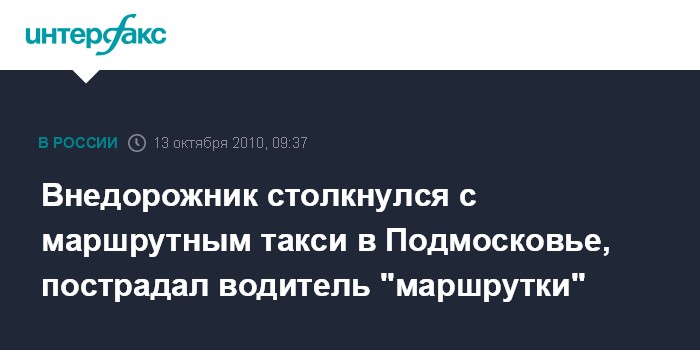 По его словам, авария произошла в среду утром в Коломенском районе Подмосковья в районе деревни Щурово. "Внедорожник совершил лобовое столкновение с маршрутным такси. В результате аварии серьезные травмы получил водитель "маршрутки", - рассказал собеседник агентства.