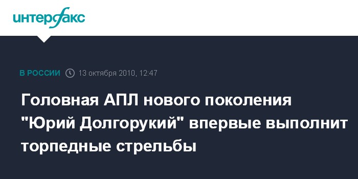 Москва. 13 октября. INTERFAX.RU - Новейший стратегический ракетоносец четвертого поколения "Юрий Долгорукий" перед началом испытательных пусков межконтинентальной баллистической ракеты "Булава" выполнит торпедные стрельбы, сообщил "Интерфаксу-АВН" в среду представитель Главного штаба ВМФ РФ.