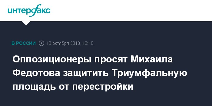 Оппозиционеры просят Михаила Федотова защитить Триумфальную площадь от перестройки