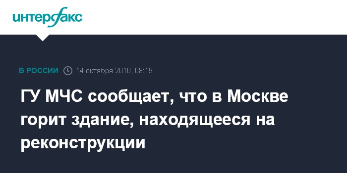ГУ МЧС сообщает, что в Москве горит здание, находящееся на реконструкции