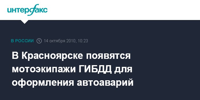 Красноярск. 14 октября. INTERFAX.RU - Красноярская мэрия направит 10 млн рублей на формирование в составе городского ГИБДД мотоэкипажей, которые смогут быстро добираться до мест ДТП.