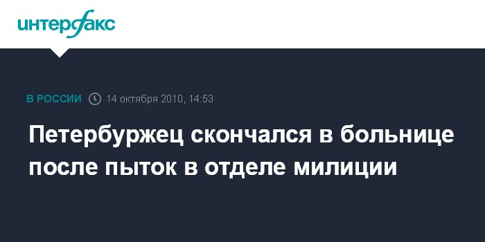 Санкт-Петербург. 14 октября. INTERFAX.RU - Следственное управление СКР по Петербургу возбудило уголовное дело по факту гибели в больнице доставленного с многочисленными травмами из отделения милиции жителя города.