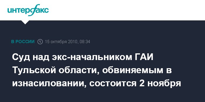 Суд над экс-начальником ГАИ Тульской области, обвиняемым в изнасиловании, состоится 2 ноября