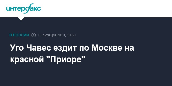 Москва. 15 октября. INTERFAX.RU - Президент Венесуэлы Уго Чавес, который прибыл накануне с официальным визитом в Москву, перемещается по столице на автомобиле российского производства.