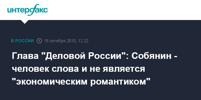 По его словам, "Собянин не относится к категории экономических романтиков и понимает, что России необходима серьезная государственная экономическая политика, которая бы стимулировала бизнес, создавала для него правильные и прозрачные условия развития".