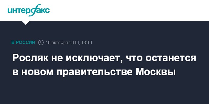 Москва. 16 октября. INTERFAX.RU - И.о. первого заммэра в правительстве Москвы Юрий Росляк не исключает возможности своего вхождения в состав нового правительства Москвы. "Я работаю в правительстве, и обязанностей с меня никто не снимал. Сейчас я и.о. Будет новая структура, и если будут предложения, будем принимать решение", - сказал Ю.Росляк, отвечая в субботу на вопрос журналистов.