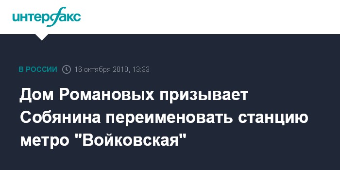 Дом Романовых призывает Собянина переименовать станцию метро "Войковская"