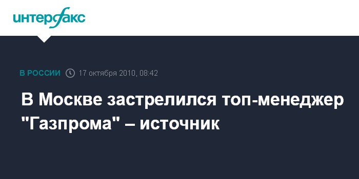 В Москве застрелился топ-менеджер "Газпрома" – источник