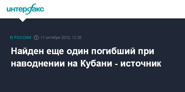 Краснодар. 17 октября. INTERFAX.RU - Обнаружено тело еще одного погибшего в результате паводка в Туапсинском районе Краснодарского края, сообщил в воскресенье агентству "Интерфакс-Юг" источник в районной администрации. "Труп мужчины найден в селе малое Псеушхо", - сказал собеседник агентства. Ранее в СКП сообщали о 13 погибших в результате стихийного бедствия. Таким образом, на данный момент число жертв, возможно, выросло до 14.