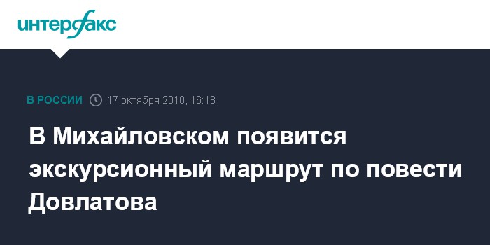 Псков. 17 октября. INTERFAX.RU - Пушкинский музей-заповедник "Михайловское" намерен к 3 сентября 2011 года, 70-летию Сергея Довлатова, создать экскурсионный маршрут по повести писателя "Заповедник", сообщила журналистам замдиректора музея по научным вопросам Елена Ступина. Экскурсионный маршрут "По местам довлатовского "Заповедника" будет начинаться с бывшего экскурсионного бюро пушкиногорской турбазы, а заканчиваться в деревне Березино около дома, в котором жил писатель в то время, когда работал экскурсоводом в Пушгорах.
