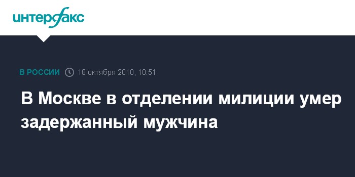 "Мужчина был задержан за административное правонарушение и скончался в камере ОВД по Лосиноостровскому району. Вызванная бригада "скорой помощи" приехала на место, когда мужчина уже умер", - рассказал собеседник агентства.