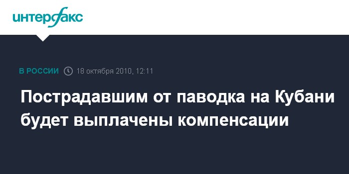 Ростов-на-Дону. 18 октября. INTERFAX.RU - Все пострадавшие в результате паводка на территории Туапсинского района Кубани получат компенсацию. Соответствующее постановление подписано губернатором Краснодарского края Александром Ткачевым.