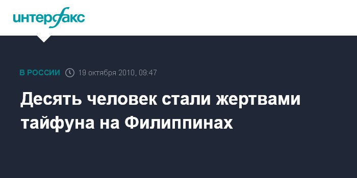 Манила. 19 октября. INTERFAX.RU - Не менее десяти человек погибли на Филиппинах из-за сильнейшего тайфуна "Меги", объявили во вторник местные власти.