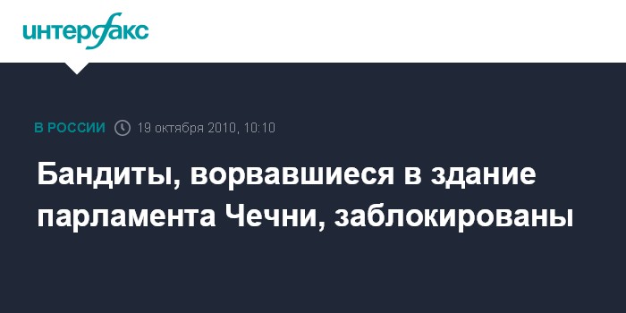 Ростов-на-Дону. 19 октября. ИНТЕРФАКС - Бандиты, ворвавшиеся во вторник в здание парламента Чечни, заблокированы в одном из помещений, сообщил "Интерфаксу" источник в силовых структурах СКФО.