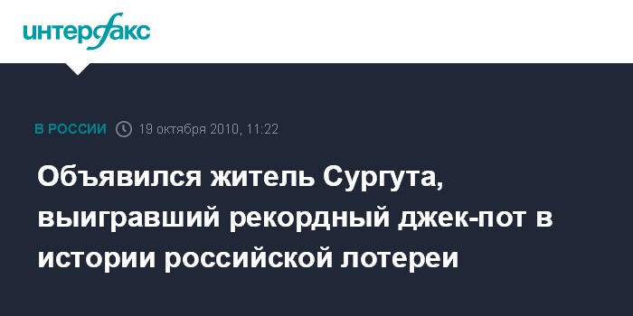 Объявился житель Сургута, выигравший рекордный джек-пот в истории российской лотереи