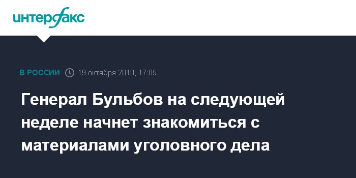 Генерал Бульбов на следующей неделе начнет знакомиться с материалами уголовного дела