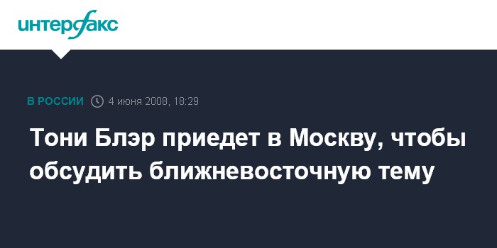 Москва. 4 июня. INTERFAX.RU - Спецпредставитель "четверки" международных посредников по ближневосточному урегулированию, экс-премьер Великобритании Тони Блэр, как ожидается, посетит Россию с визитом в середине июня. "Действительно, визит Тони Блэра предполагается в середине текущего месяца. Будут обсуждаться вопросы по его профилю, то есть ситуация на Ближнем Востоке", - сообщил "Интерфаксу" дипломатический источник в среду.