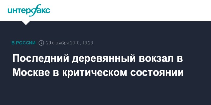 Москва. 20 октября. INTERFAX.RU - "Архнадзор" предупреждает о возможном разрушении последнего деревянного вокзала в Москве - станции "Подмосковная" Московско-Виндавской железной дороги.