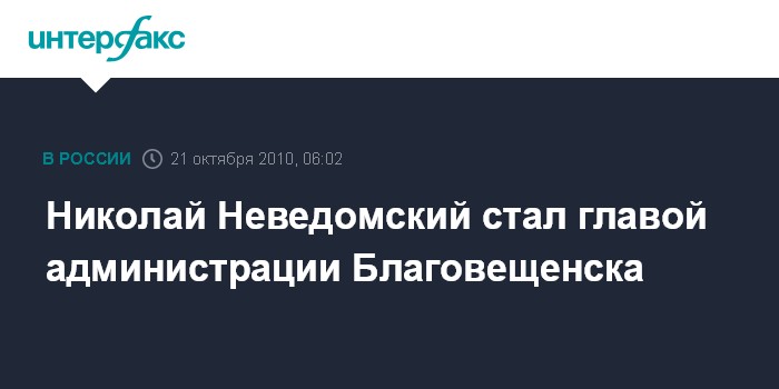 Благовещенск. 21 октября. ИНТЕРФАКС-ДАЛЬНИЙ ВОСТОК - Депутаты городской Думы Благовещенска на внеочередном заседании в четверг большинством голосов назначили на должность главы городской администрации (сити-менеджера) Николая Неведомского.