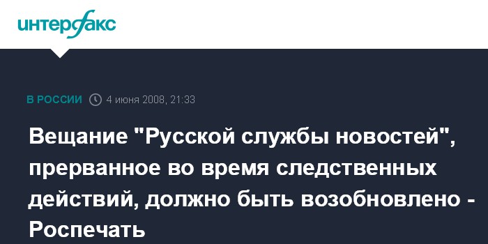 Вещание "Русской службы новостей", прерванное во время следственных действий, должно быть возобновлено - Роспечать