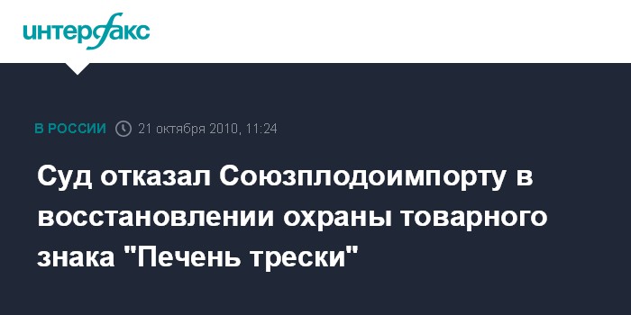 Суд отказал Союзплодоимпорту в восстановлении охраны товарного знака "Печень трески"