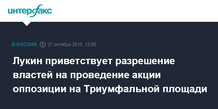 "Я всегда говорил, что нужно действовать строго по закону. Очень рад тому, что оппозиции разрешили проводить акции на Триумфальной площади", - сказал Лукин "Интерфаксу" в четверг.