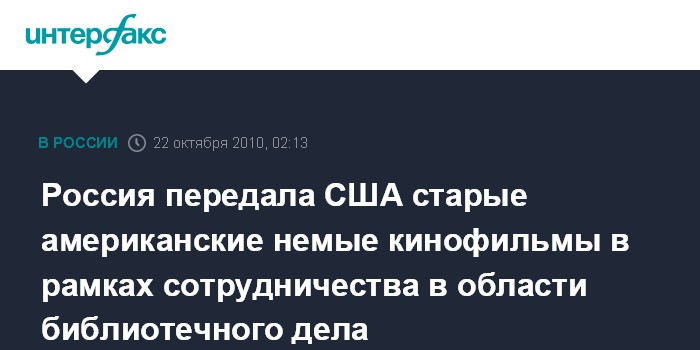 Россия передала США старые американские немые кинофильмы в рамках сотрудничества в области библиотечного дела