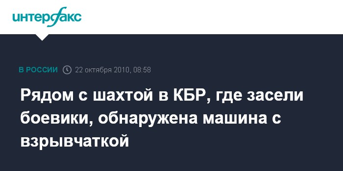 Москва. 22 октября. ИНТЕРФАКС - В Кабардино-Балкарии рядом с входом в шахту, где укрываются боевики, обнаружена заминированная машина, сообщил "Интерфаксу" источник в правоохранительных органах в пятницу.