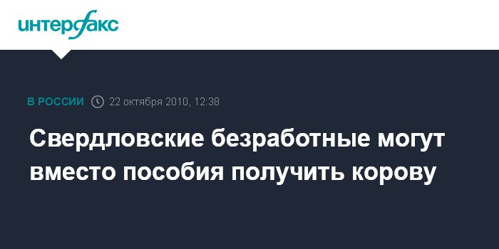 Свердловские безработные могут вместо пособия получить корову