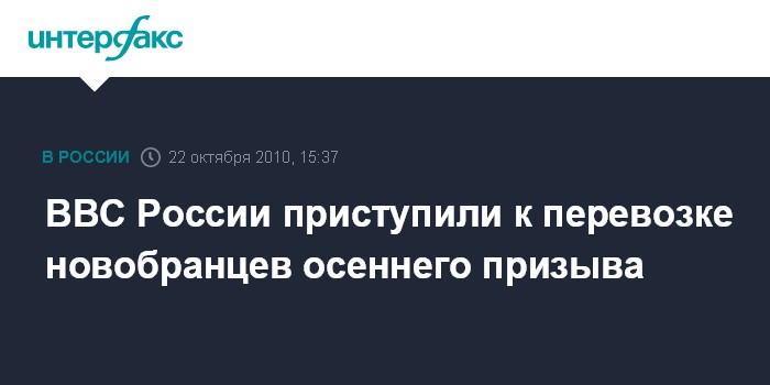Москва. 22 октября. INTERFAX.RU - Экипажи самолетов Ил-76 Военно-транспортной авиации в ходе осенней призывной кампании выполнят 60 рейсов для доставки 20 тыс. призывников к местам прохождения военной службы, сообщил "Интерфаксу" в пятницу официальный представитель Управления пресс-службы и информации Минобороны РФ подполковник Владимир Дрик.