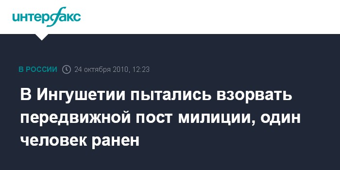 В Ингушетии пытались взорвать передвижной пост милиции, один человек ранен