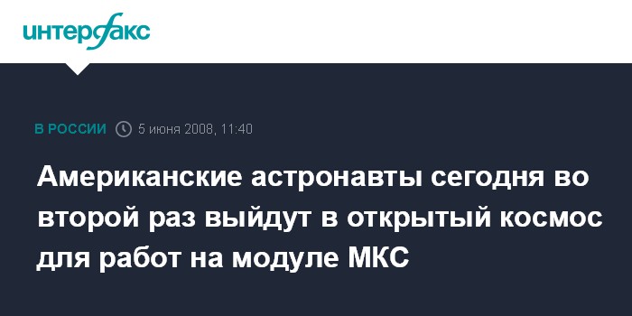Москва. 5 июня. INTERFAX.RU - Астронавты НАСА Рональд Гаран и Майкл Фоссум сегодня совершат второй выход за пределы Международной космической станции, сообщил "Интерфаксу-АВН" представитель НАСА в российском Центре управления полетами (ЦУП, Королев, Московская область) Сергей Пузанов.