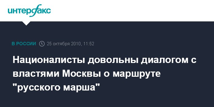 "Переговоры с московскими властями в этом году идут конструктивно. Мы не ожидали такого. Идет диалог, обсуждаются различные варианты", - сообщил "Интерфаксу" в понедельник один из организаторов акции, лидер запрещенной в России судом националистической организации "Славянский союз" Дмитрий Демушкин.