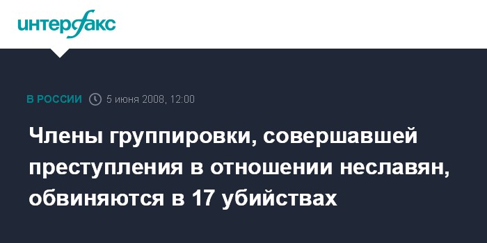 Члены группировки, совершавшей преступления в отношении неславян, обвиняются в 17 убийствах