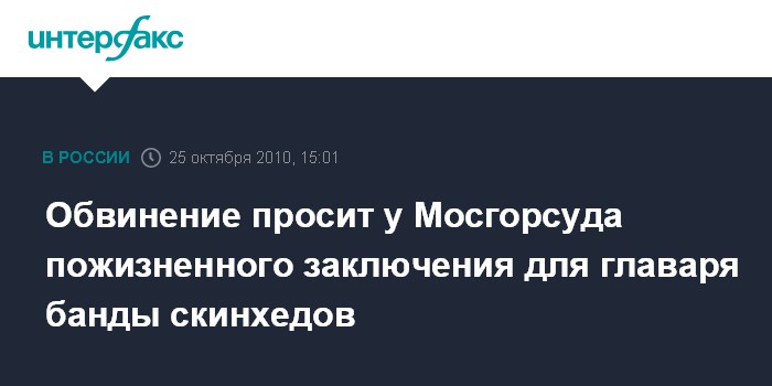 Обвинение просит у Мосгорсуда пожизненного заключения для главаря банды скинхедов
