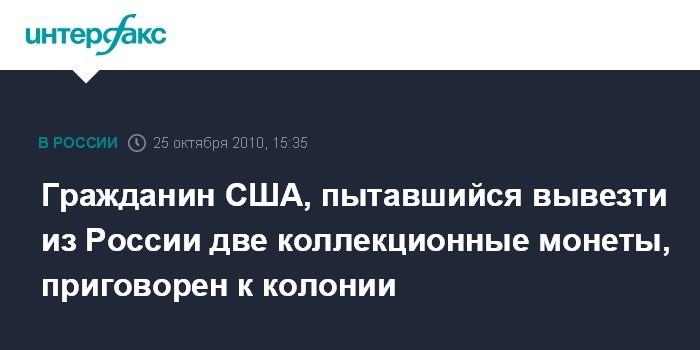 Гражданин США, пытавшийся вывезти из России две коллекционные монеты, приговорен к колонии