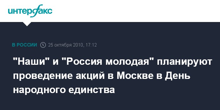 Москва. 25 октября. INTERFAX.RU - Активисты молодежных движений "Наши" и "Россия молодая" отметят День народного единства альтернативным "Русским маршем" и акцией по борьбе с наркоманией.