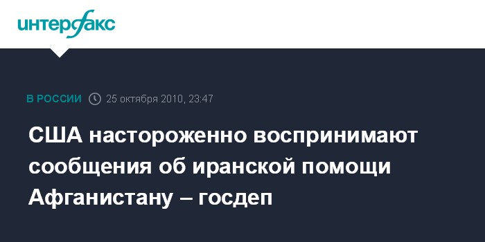 США настороженно воспринимают сообщения об иранской помощи Афганистану – госдеп