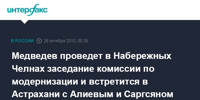 Медведев проведет в Набережных Челнах заседание комиссии по модернизации и встретится в Астрахани с Алиевым и Саргсяном