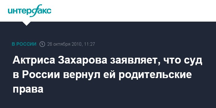 "Российский суд вернул мне мои родительские права, противозаконно отнятые французским судом", - сообщила Захарова "Интерфаксу" во вторник.