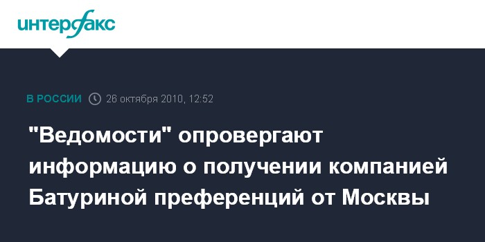 "Ведомости" опровергают информацию о получении компанией Батуриной преференций от Москвы