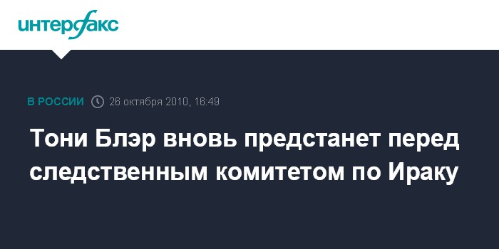 Лондон. 26 октября. INTERFAX.RU - Бывший премьер-министр Великобритании Тони Блэр повторно предстанет перед официальным следственным комитетом, расследующим обстоятельства участия британских войск во вторжении в Ирак в 2003 году, сообщает во вторник газета The Guardian.