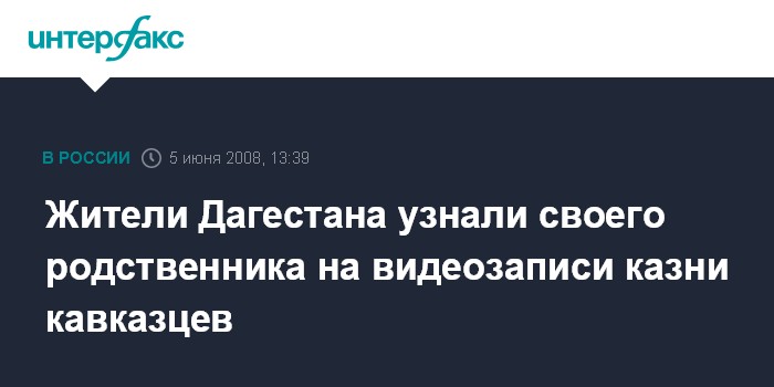 Москва. 5 июня. INTERFAX.RU - Жительница Дагестана опознала своего родственника на видеоролике с кадрами казни двух людей, распространенном в Интернете прошлым летом.