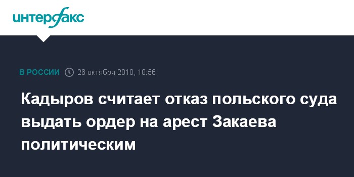 "Конечно, я с недоумением воспринял очередной отказ польской судебной системы выдать ордер на арест Ахмеда Закаева. Но не удивлен этим вердиктом. Иного от Варшавы и Лондона ожидать не приходится. Запад не только не помогает бороться с террористами, но и в какой-то мере романтизирует Закаева и ему подобных . Закаевы и Удуговы себя чувствуют уверенно, свободно передвигаются, раздают многочисленные интервью, тиражируют взгляды экстремистского толка", сказал Кадыров.